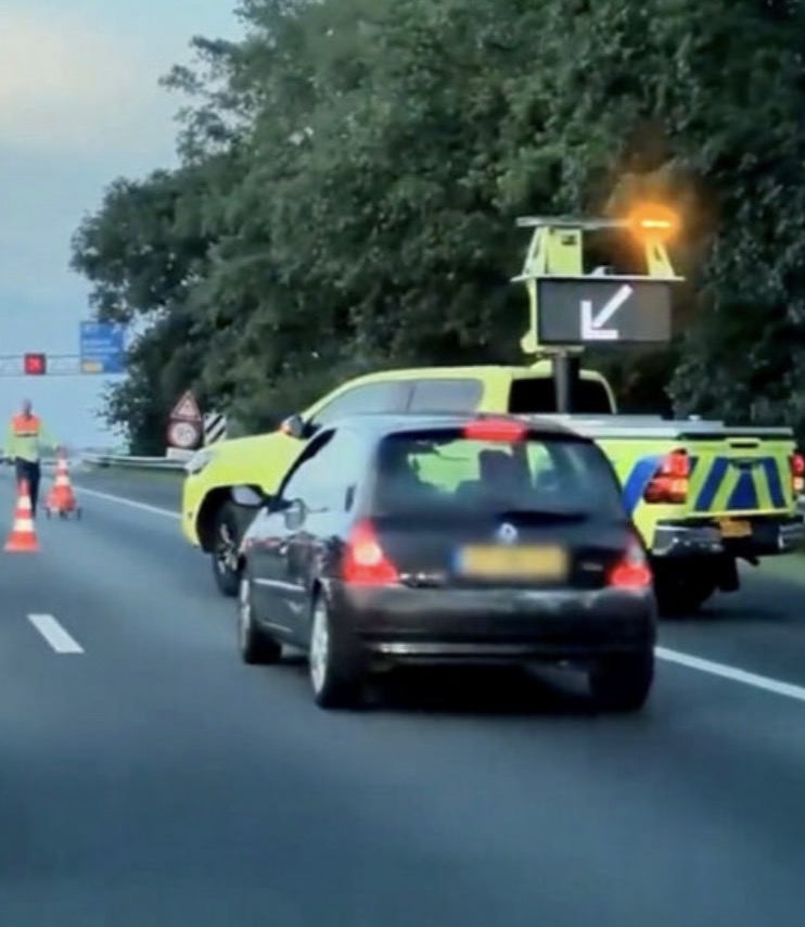 Het leek zo’n doodgewone middag op de snelweg, maar dat idee verdampte razendsnel. Iedereen weet: een rood kruis boven de weg betekent stoppen. Punt. Toch vonden twee gasten in een Renault Clio dat ze een privébaan hadden ontdekt.