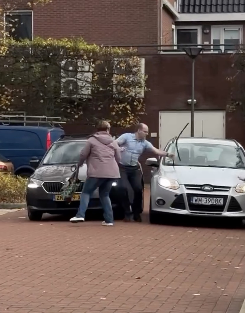 Er is geen zichtbare botsing, geen sirenes en geen politie in beeld. Alleen een auto die vooruit wil en mensen die daar duidelijk anders over denken. Dat maakt het fragment zo ongemakkelijk om te bekijken.
