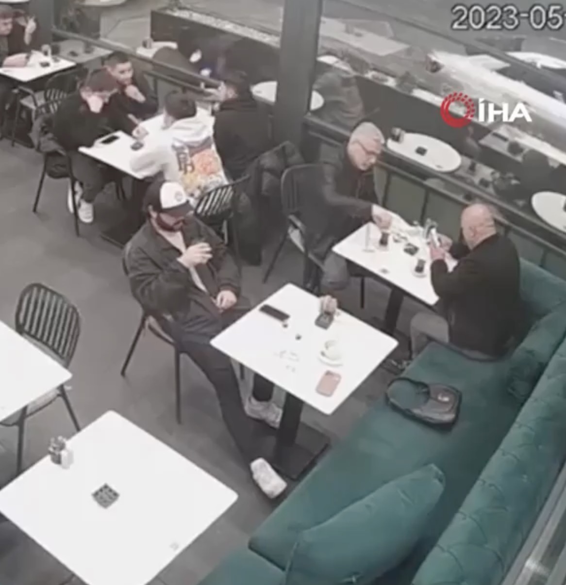De camerabeelden — die inmiddels massaal worden gedeeld op sociale media — laten een chaotisch tafereel zien. Stoelen vliegen om, mensen duiken onder tafels, en een serveerster probeert nog tussenbeide te komen maar moet zelf dekking zoeken als een glas tegen de muur uit elkaar spat. Binnen een halve minuut is de hele eetzaal veranderd in iets wat meer wegheeft van een vechtscène dan een diner.