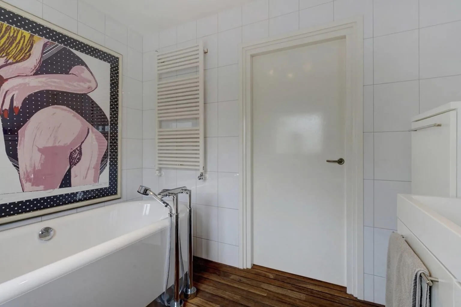 Kijk, smaken verschillen. Misschien houden de huidige bewoners van een beetje pit in de badkamer. Misschien vinden ze dat ontspannen in bad nóg lekkerder met wat vrouwelijke vormen aan de muur. Het kan allemaal. Maar als je je huis op Funda zet, zou je denken dat je dat soort persoonlijke uitingen even weghaalt.