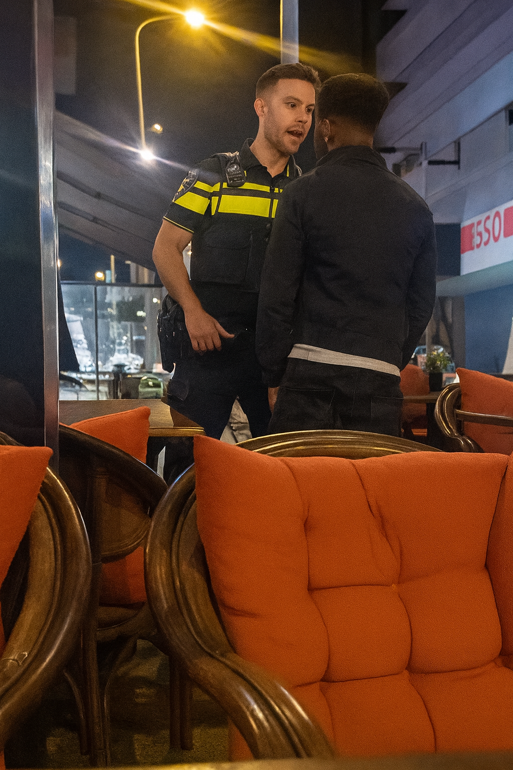 Politieagenten zijn getraind op calm, control and de-escalation. Maar verzonnen respect dat nooit gegeven werd, kan niet verwachten dat het automatisch komt. De agenten blijven rustig, maar vastberaden. Hun tone of voice is voorzichtig, want publiek aanwezig, maar hun intentie is helder: luisteren of reageren.