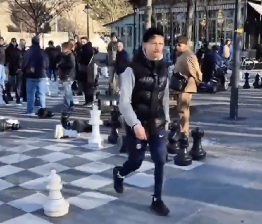 Op X gaat een video rond uit Frankrijk waarin een ontspannen middag volledig ontspoort. Mensen zitten buiten en spelen een pot groot schaken, niks geks, totdat één gast met een petje besluit dat dit blijkbaar te veel gezelligheid is.