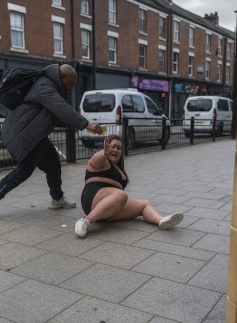 Net wanneer je denkt dat het niet erger kan worden, verschijnt er een man. In eerste instantie lijkt hij misschien iemand die wil helpen. Hij staat even stil, kijkt naar haar, en zet een stap richting de vrouw. Dat geeft hoop. Een moment van opluchting zelfs: misschien pakt iemand deze situatie toch op de juiste manier aan.