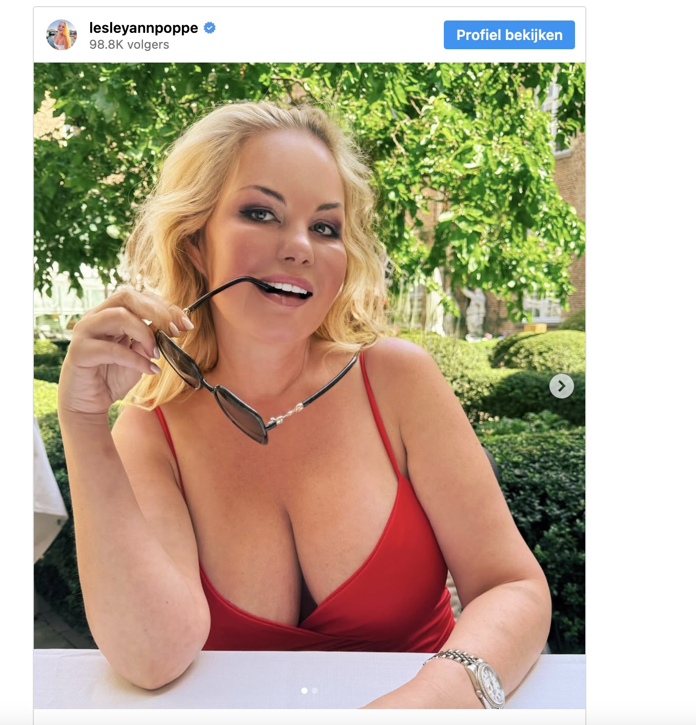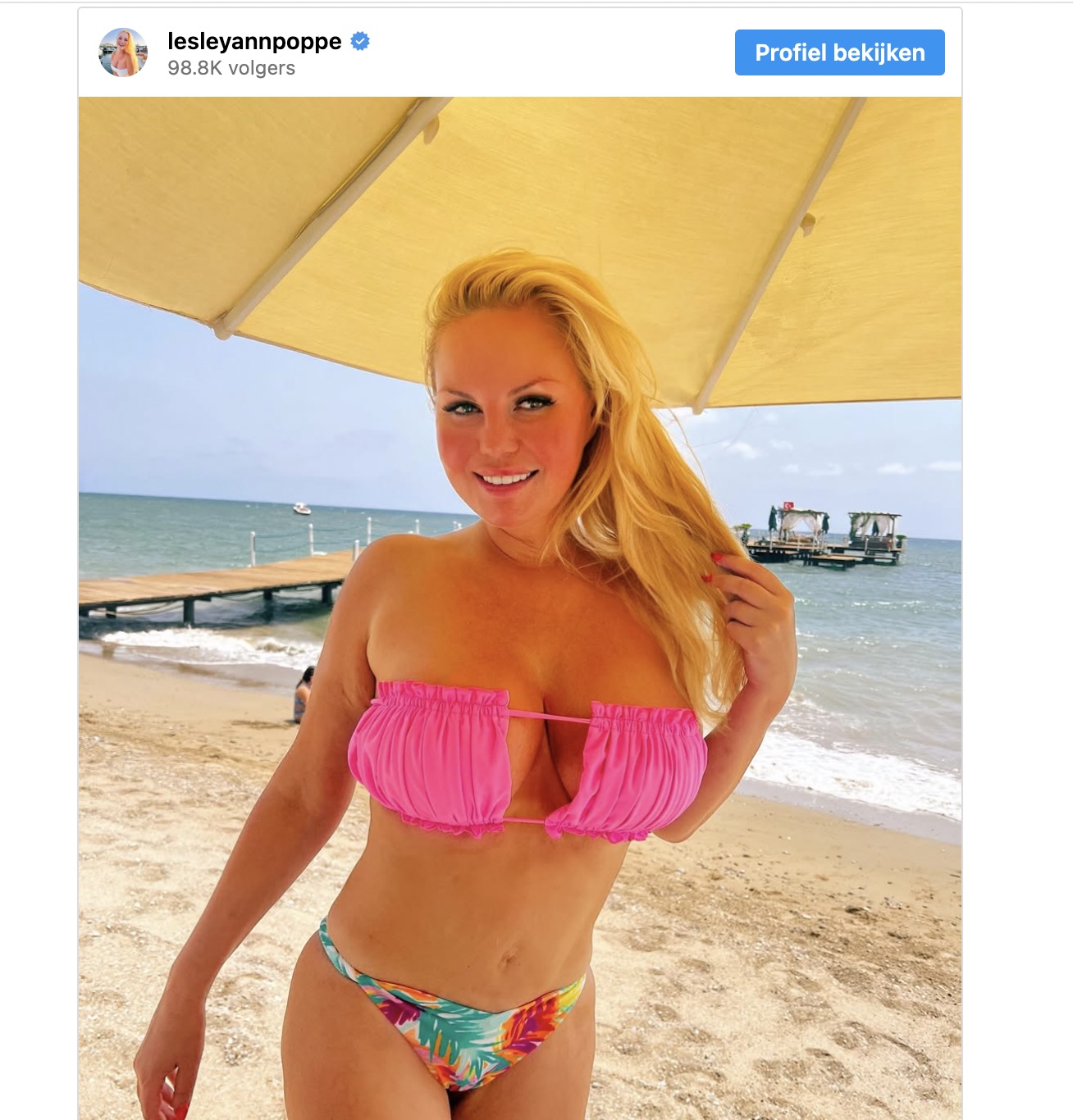 De zomer mag dan wat kwakkelend zijn in de Lage Landen, maar bij Lesley-Ann Poppe is het zonnetje gewoon gaan schijnen. De 46-jarige blondine knalde onlangs een foto online waarin ze in een strak badpak al haar rondingen vol in de strijd gooit. En ja, dat blijft een fraai gezicht, of je haar nu kent van televisie, cosmetica of die businessperikelen van de laatste tijd.