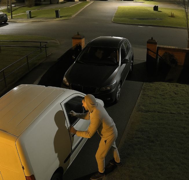Het begon allemaal op een rustige avond in een buitenwijk. De man in kwestie zat thuis toen hij vreemde geluiden hoorde vanaf zijn oprit. Geen vogels, geen wind – nee, duidelijk metalen geklop, alsof iemand bezig was om zijn busje open te breken. In plaats van stilletjes te kijken of er iets gebeurde, deed hij wat in hem opkwam: hij stormde naar buiten.