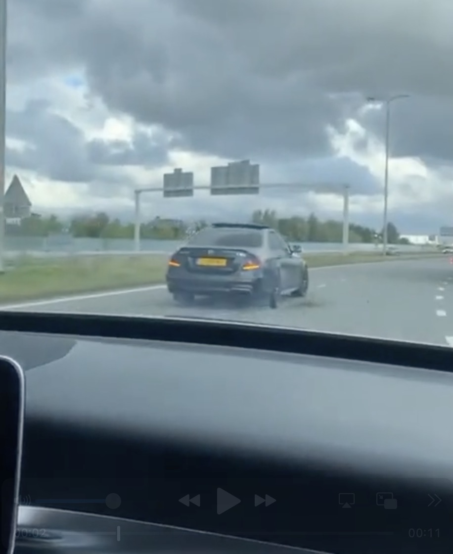 De beelden beginnen met de AMG die met hoge snelheid over de snelweg jaagt. Andere weggebruikers houden keurig hun baan, maar de bestuurder van de Mercedes had duidelijk geen zin in gewoon meedoen. Hij knalt van rijstrook naar rijstrook alsof iedereen anders figuranten zijn in zijn persoonlijke racefilm.