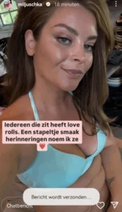 De blauwe bikini was geen toevallig plaatje, maar een bewuste boodschap: dit is wie ik ben, en dat is genoeg. Voor velen is dat een verademing. Onzekerheid is voor veel mensen een dagelijkse realiteit, en juist daarom geeft haar boodschap kracht.