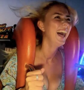 De tweede reden is minder subtiel, maar net zo bepalend. De dame is gezegend met een forse boezem, iets wat tijdens de rit niet bepaald verborgen blijft. Terwijl de attractie de passagiers alle kanten op slingert, wordt dat onvermijdelijk een opvallend detail. En juist dát maakt het voor veel kijkers extra grappig en opvallend. Online wordt er massaal gereageerd met termen als ‘Airbag-editie’ en ‘veilig de lucht in’.