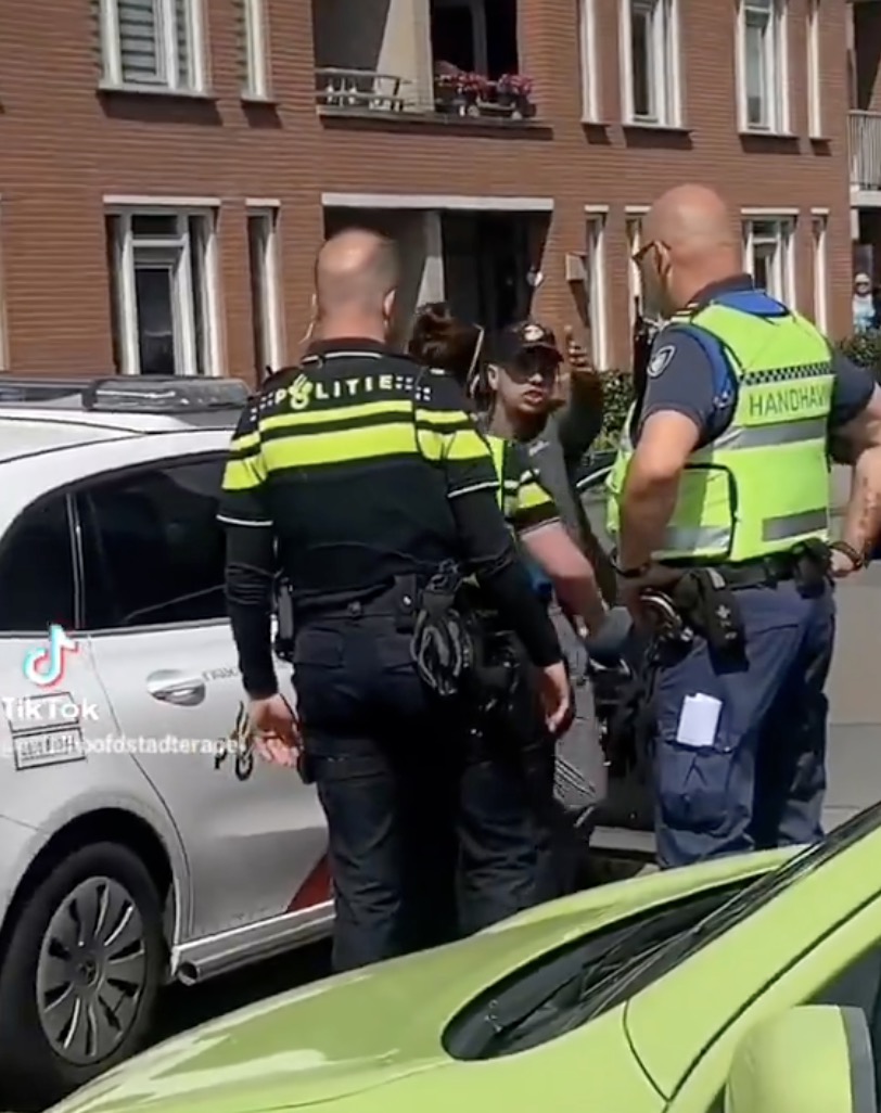 De focus ligt duidelijk niet meer op de aanhouding zelf, maar op het feit dat er gefilmd wordt. De cameraman lijkt het mikpunt van frustratie, alsof de aanwezigheid van de camera een extra grens overschrijdt.