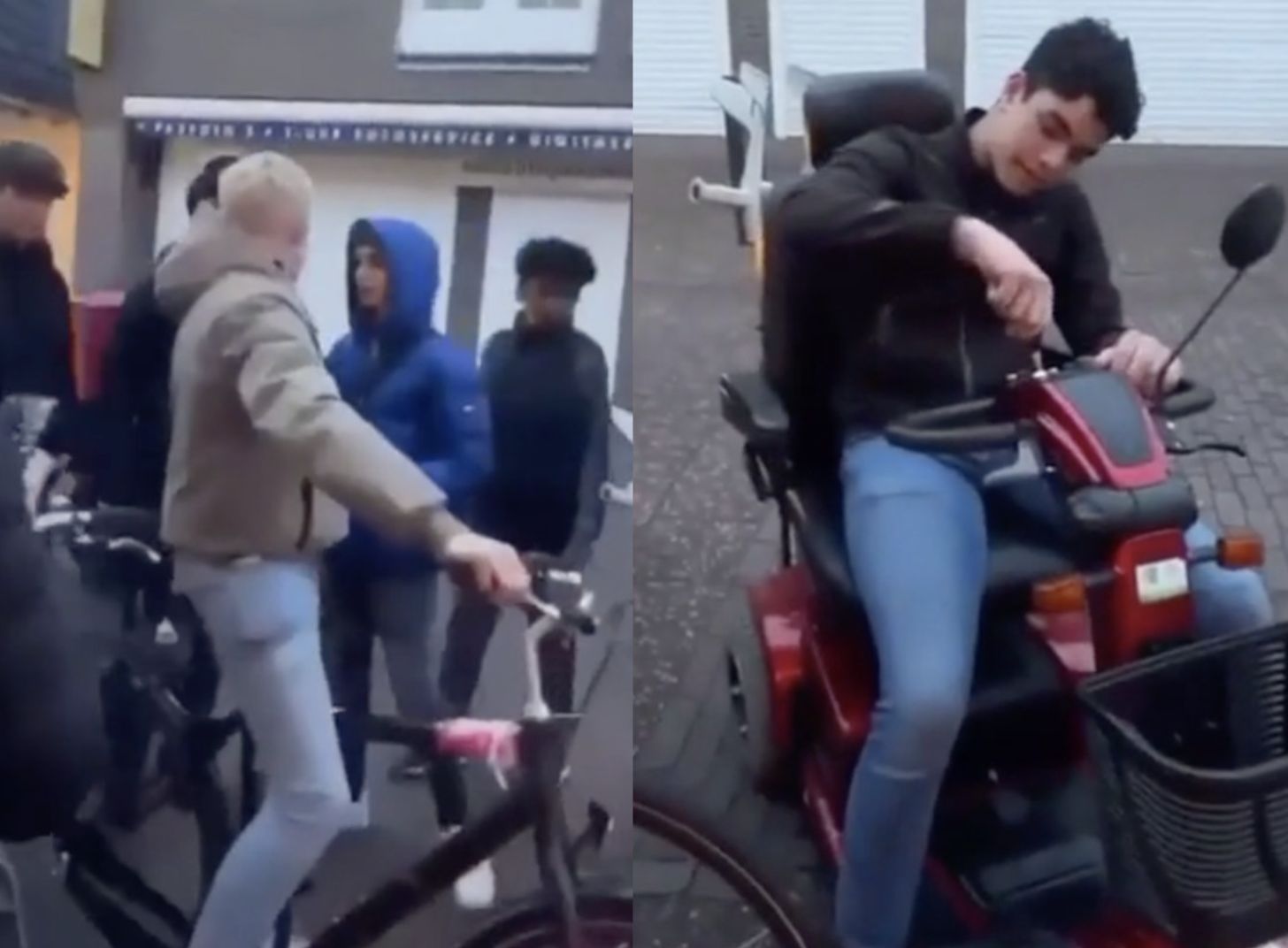 Op de beelden, die inmiddels als een lopend vuurtje over sociale media vliegen, zie je hoe twee jonge gasten — eentje met een opvallend blond kapsel, de ander duidelijk minder mobiel en met een rollator — worden belaagd door een groepje leeftijdsgenoten. Op papier zou je denken: niks aan de hand. In de praktijk zie je een situatie die in no-time grimmig wordt.