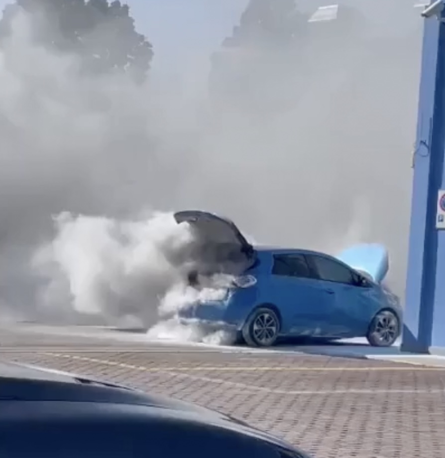 Een rustige straat, een felblauwe elektrische auto en ogenschijnlijk niets aan de hand. Totdat plots dikke rookwolken uit de motorkap beginnen te komen. Binnen enkele seconden verandert het hele tafereel in chaos. Omstanders zien hoe de rook steeds donkerder wordt en al snel gevolgd wordt door felle vlammen. Waar het voertuig eerst nog onschuldig stond te blinken in de zon, staat nu een brandende bak die eruitziet als een scene uit een rampenfilm.
