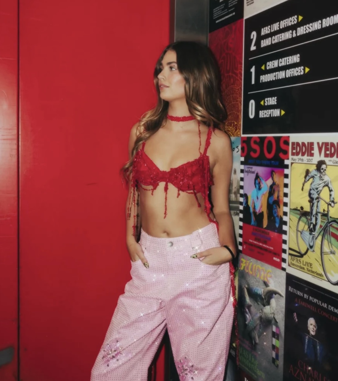 Wat Roxy slim doet, is balans houden. Ze is speels, maar niet kinderachtig. Zelfverzekerd, maar niet afstandelijk. En aantrekkelijk, zonder dat het geforceerd wordt. Die kleedkamerfoto in dat rode topje past precies in dat plaatje.