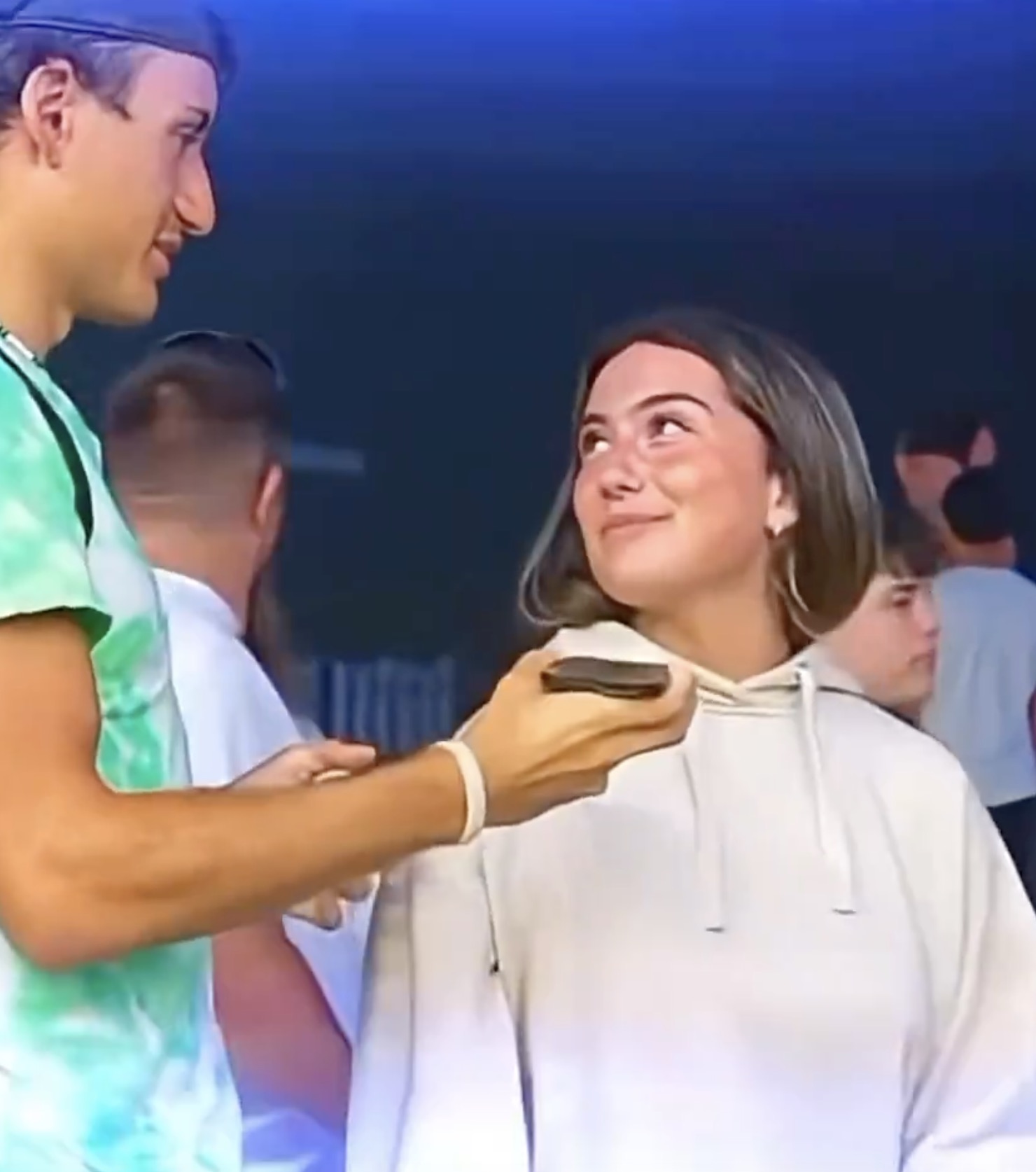 Omstanders lachen ongemakkelijk. De interviewer ruikt sensatie en blijft doorvragen. De sfeer slaat om. Wat begon als een grappig interview, verandert in een relatiecrash die live wordt vastgelegd.