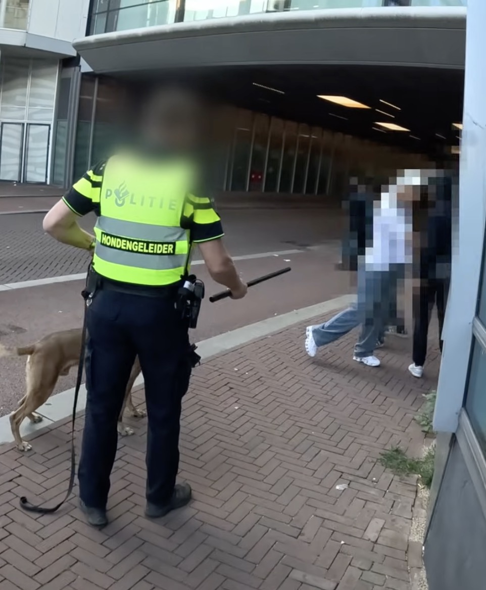 Op een bepaald moment besloot de politie een diensthond in te zetten. Een politiehond kan worden gebruikt om afstand te creëren en om controle terug te krijgen in een situatie waar verbale instructies niet meer voldoende effect hebben.
