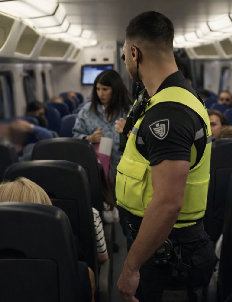 Wanneer veiligheidspersoneel de trein binnenkomt, gebeurt iets opvallends. De vragen worden niet alleen aan het slachtoffer gesteld, maar ook aan de omstanders.