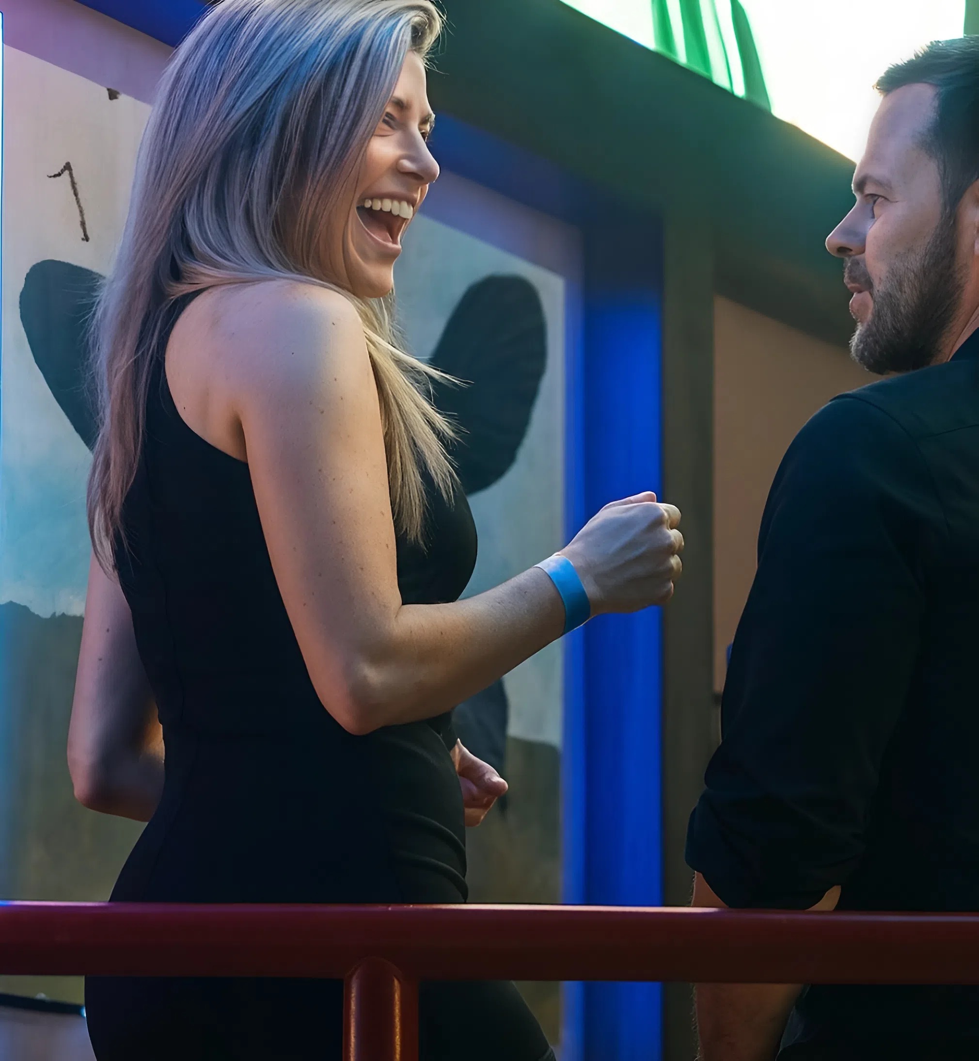 De dj draait, de dansvloer beukt, en toch staart half de club dezelfde kant op. Gesprekken stoppen, er wordt gefluisterd en gelachen. Sommigen vinden het grappig, anderen ongemakkelijk. Maar niemand kan om haar heen.