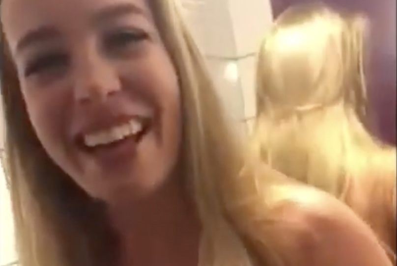 Vervolgens duurt het vijf minuten voordat haar vriendinnen merken dat ze te lang wegblijft. Dan barst de zoektocht los. De wc-deur zit op slot, iemand klopt, geen reactie. Paniek. Tot iemand over het muurtje gluurt en ziet dat ze onderuit ligt, roerloos, met haar arm in de prullenbak en haar haar in de spoelknop. Oeps.